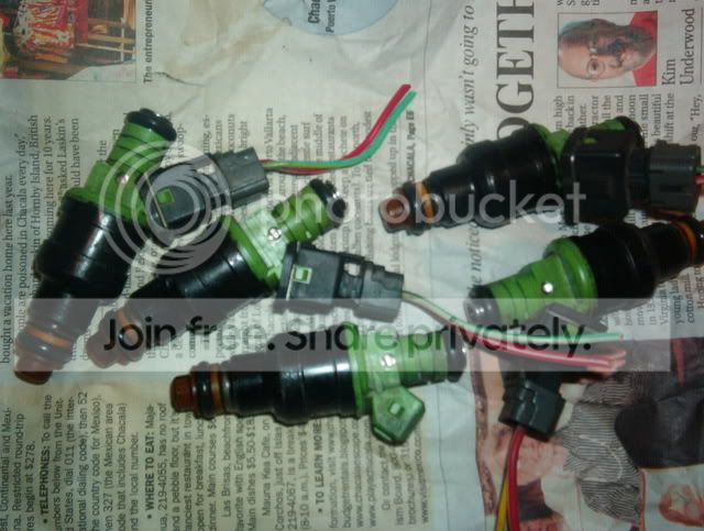 Ok I got 5 Bosch / Ford MotorSport 42lb/hr fuel injectors, with the neccessary pig tails for the wiring of them. You may want to purchase OE Bosch # "1 287 010 704" this is the new seal kit part number for those. They were in great used condition when i bought them and i never installed them but do notice that there is one bad oring and a couple of the plastice tips are cracked. this doesn't affect the function of them so i'm told. but that is the part number for the seal and tip kit.