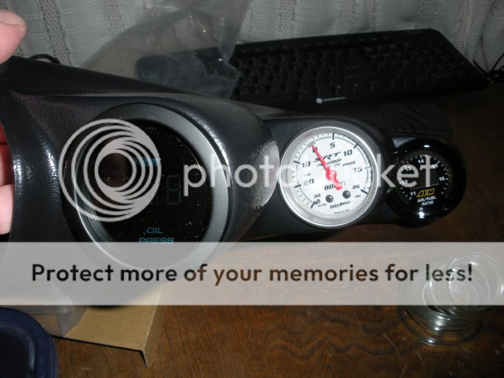 electronic oil pressure gauge, SRT-4 OEM boost gauge, AEM UEGO wideband, universal triple gauge pillar\/\/\/