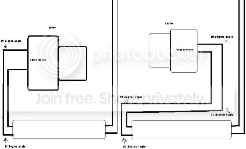 as you can see on the left is what i would like to do with my car's intake setup and on the right is what i have done already... the left is less restrictive because it has less 90/180 degree bends than the right, get what im tryin to say? im sorry im being difficult but i want to get my point across one way or another... sorry that im a pain in the ass