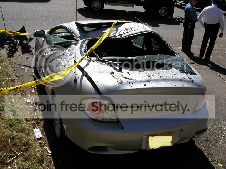 I get a call from my girlfriend at 3PM to come home right away because she thinks something fell on my car. For those of you who don't know, I have 2 cars. A "beater" 1990 Celica and a hooked up 2000 Tiburon.