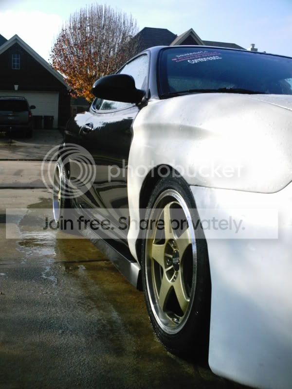 lookin good man love the new rims. you should definatly do a fender flare or somethin to widen the back of the car though