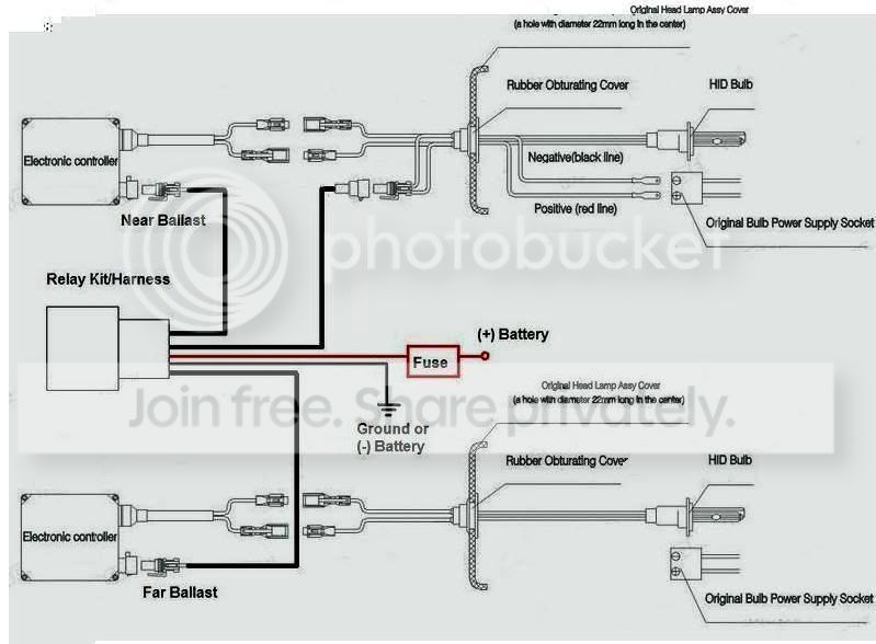 There is also an available relay harness kit if you want to tap the power directly from the battery. This can disable your vehicle's DRLs (Daytime Running Lights), lessen the load on the stock healight power source/relay and get a more reliable/standalone or stable power source for the ballasts. This is highly recommended but not really necessary